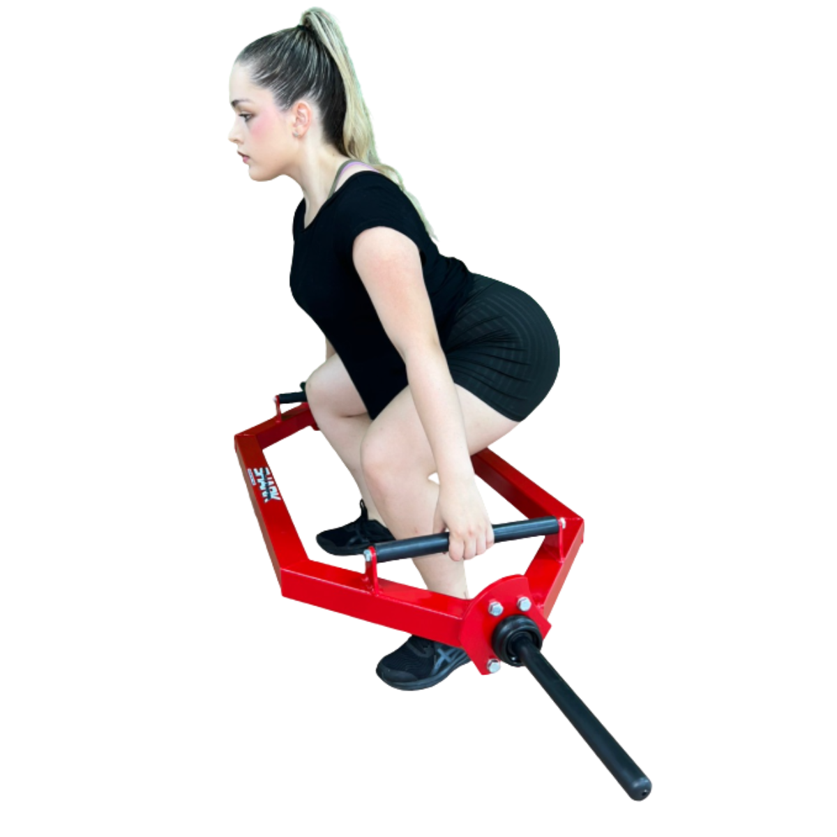 Su estructura hexagonal centraliza la carga del peso en línea con el cuerpo, ofreciendo una postura más equilibrada y minimizando el riesgo de lesiones. Por esta razón, es una excelente opción para atletas, fisioterapeutas y principiantes, así como para personas con problemas lumbares que buscan entrenar con confianza.