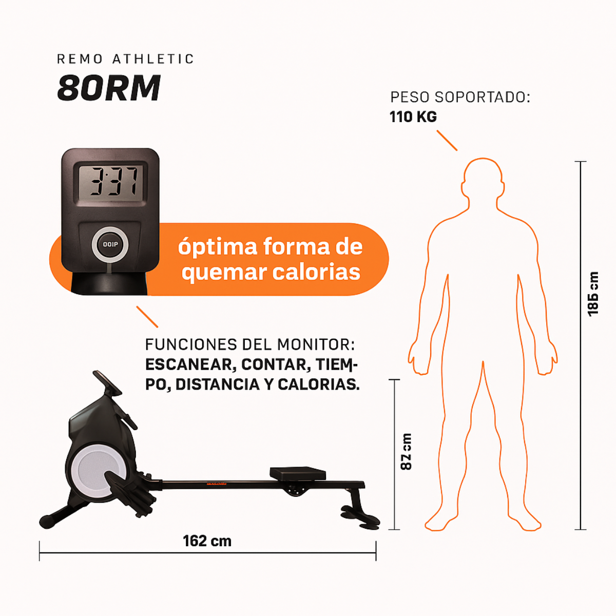 El Remo Athletic 80RM no es solo un equipo de fitness: es una experiencia de entrenamiento que transforma tu cuerpo y tu mente. Diseñado para trabajar hasta el 85% de la musculatura, es el aliado perfecto de atletas de alta performance y practicantes de cross training que buscan un desafío real. Con un monitor multifuncional y un diseño ergonómico, este remo ofrece intensidad, control y resultados visibles desde las primeras sesiones.